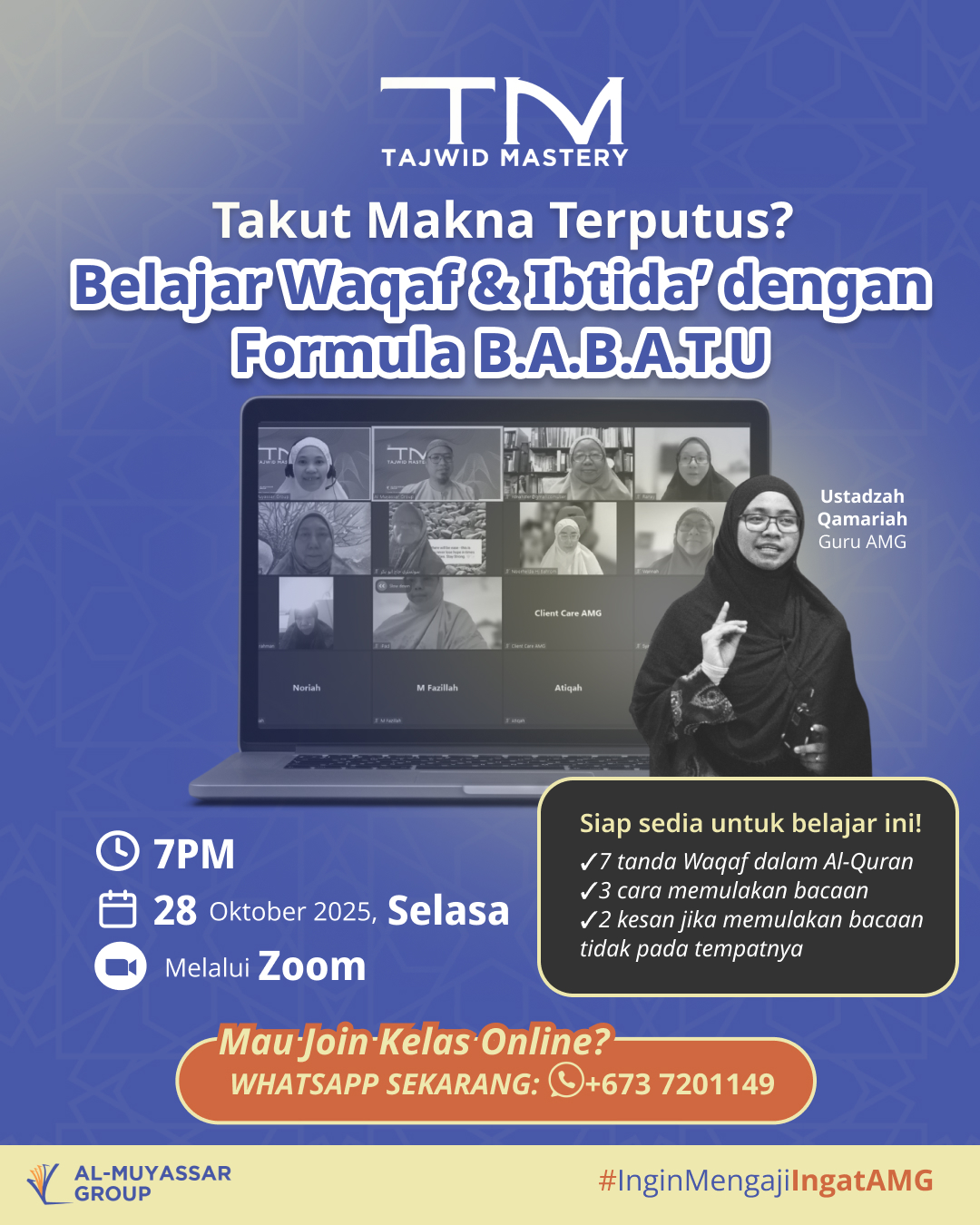Kalau biskita berminat untuk mula mengaji dan memperbaiki bacaan, boleh join Tajwid Mastery bulan Oktober ini!